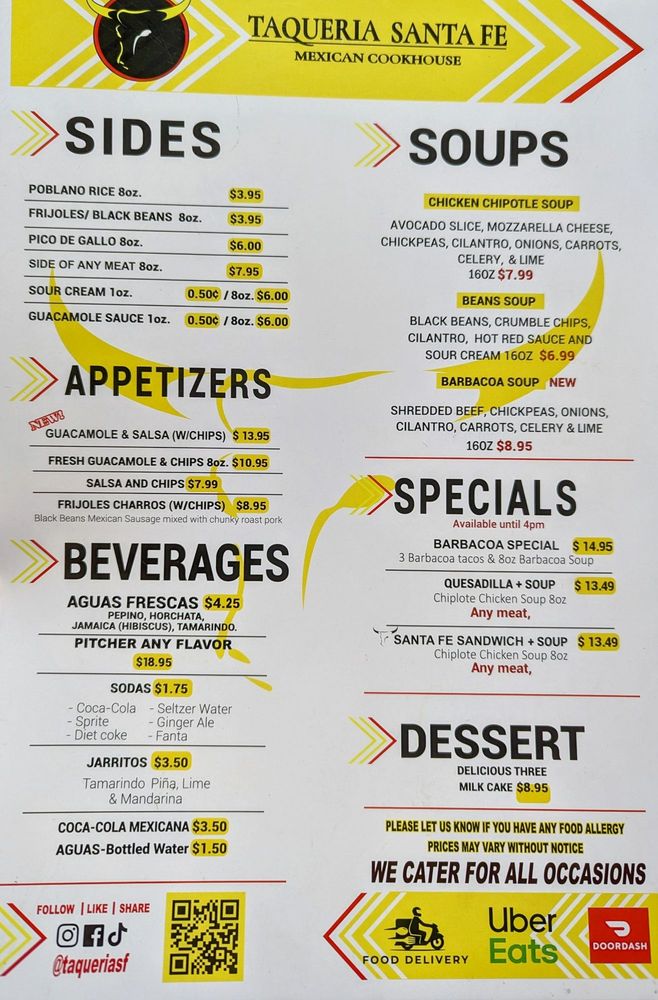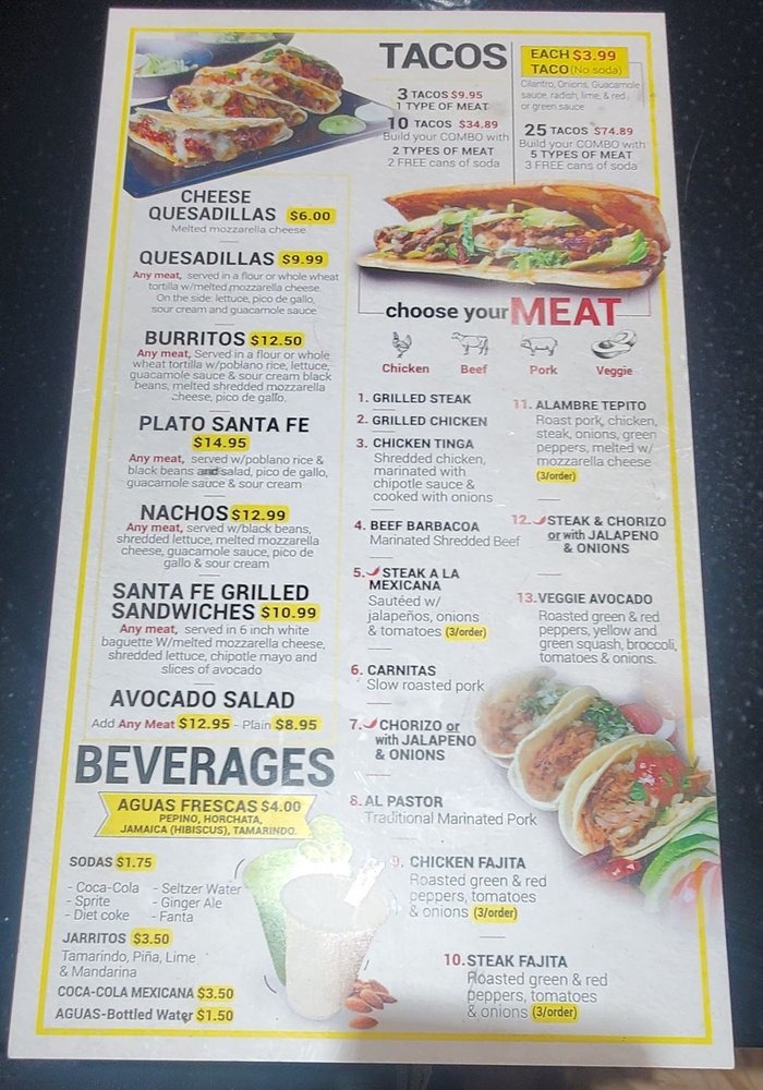 Taqueria Santa Fe, located in Woodside, NY, offers a vibrant Mexican dining experience with a wide range of options like Tacos al pastor, burritos, nachos, enchiladas, and more. Customers rave about the top-notch quality of the food, friendly service, and authentic flavors. The restaurant offers vegan and vegetarian choices, along with options for catering and group dining. The owner's warm hospitality and complimentary dishes add a personal touch to the dining experience. Don't miss out on their tres leches dessert and pineapple-infused tequila. With a cozy ambiance, good music, and reasonable prices, Taqueria Santa Fe is a must-visit for Mexican food lovers in NYC.